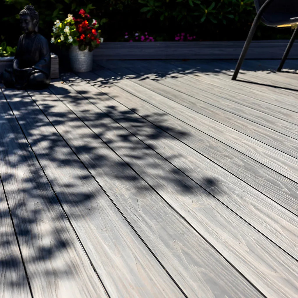 The Habitat+ Grey Composite Deck board delivers enduring outdoor flooring that resists wear and tear while delivering a stylish finish. Its dual-texture design lets you tailor the look to your space, whether you prefer the warm, natural feel of woodgrain or the subtle, contemporary groove. Maintenance is straightforward—keep it looking great with a light brush and a hose or low-pressure jet wash. Made in Britain and backed by a 15-year warranty, it’s a reliable choice for decks, patios, and other outdoor spaces that need to endure weather, foot traffic, and seasonal changes.