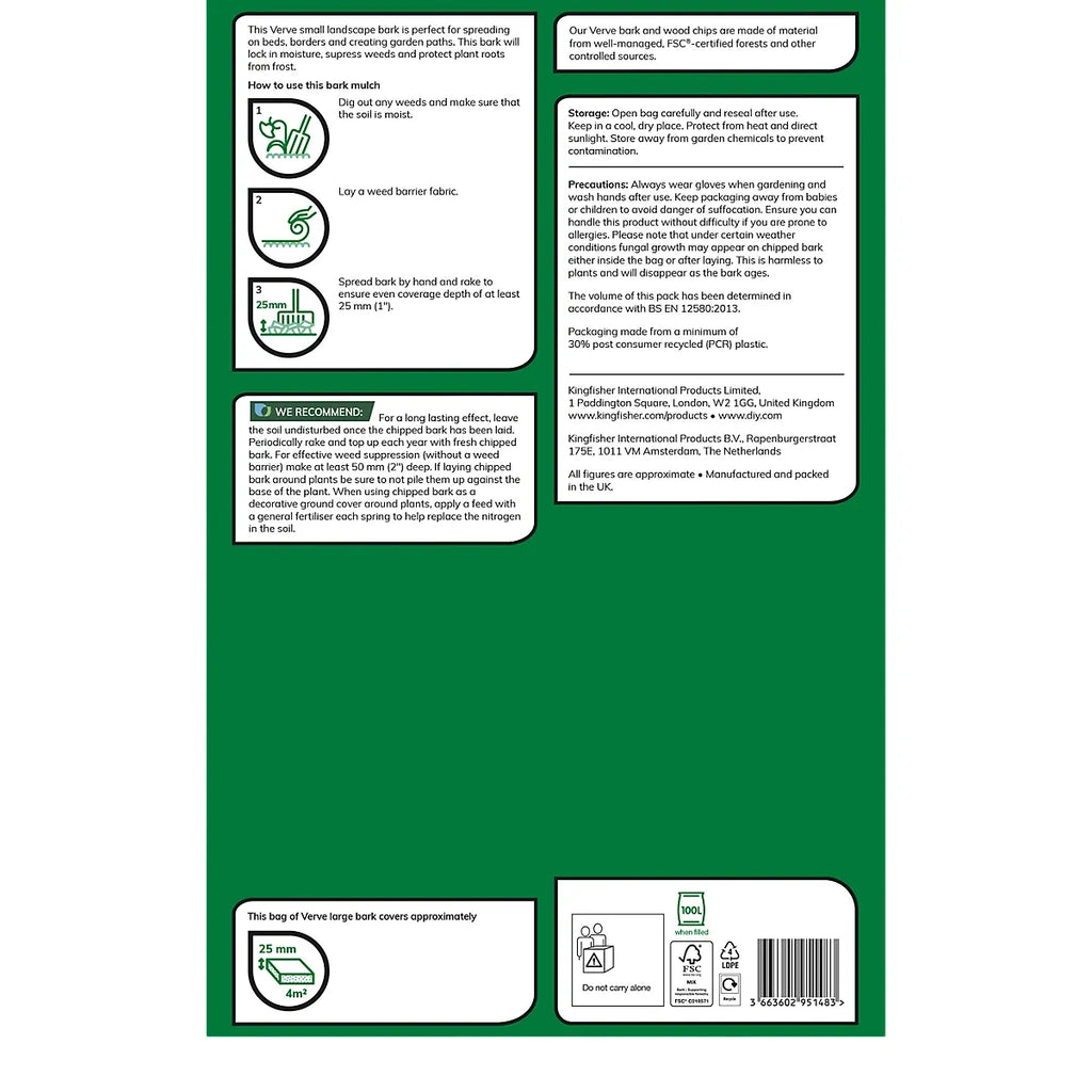 Verve Landscape Dark Brown Small Bark chippings come in a convenient 100L bag, designed to refresh garden beds, borders, and paths with a natural, tidy finish. Perfect for homeowners who want quick, effective mulch that brightens outdoor spaces while supporting healthy plant growth.
